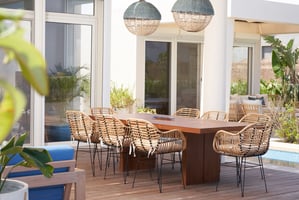 • Pair with chairs that have negative space (open backs, woven seats)